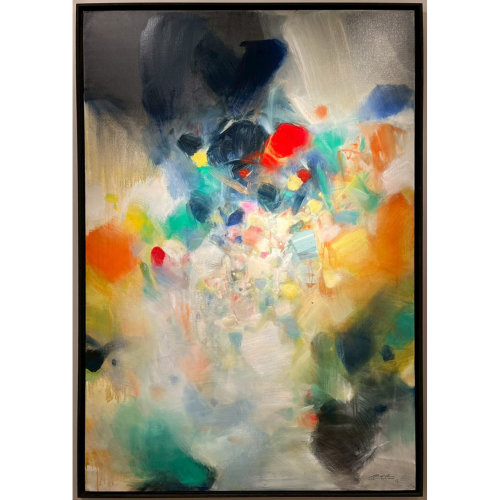 畫面結構複雜,顏色層次豐富且筆觸奔放,藝術家在控制與隨性之間的平衡協調得非常完美,彷彿有能量在流動。
